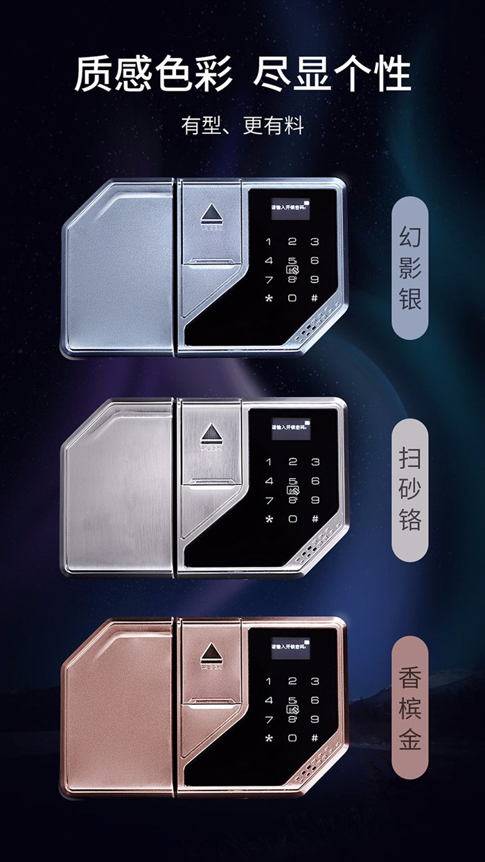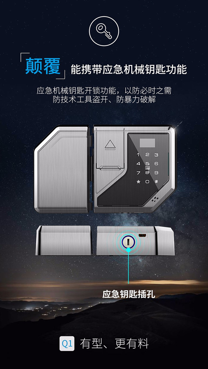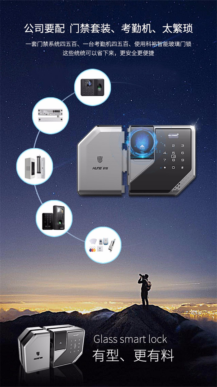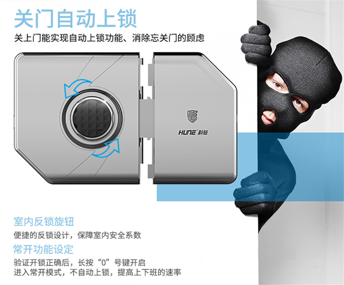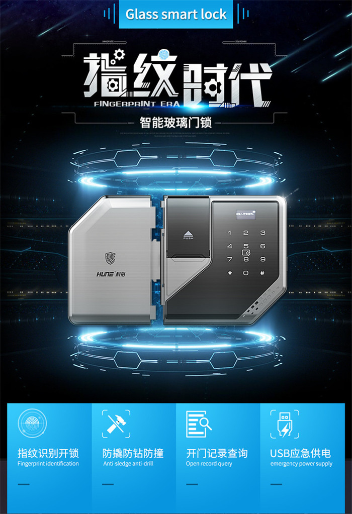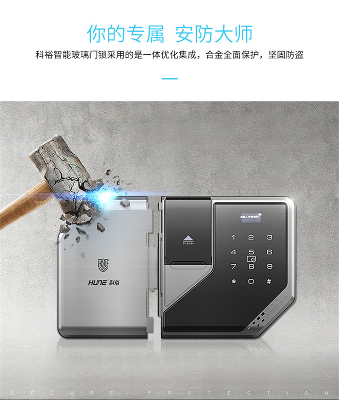 滑盖隐藏式指纹读取器,适合多种玻璃门。多功能玻璃指纹锁,有型更有料。