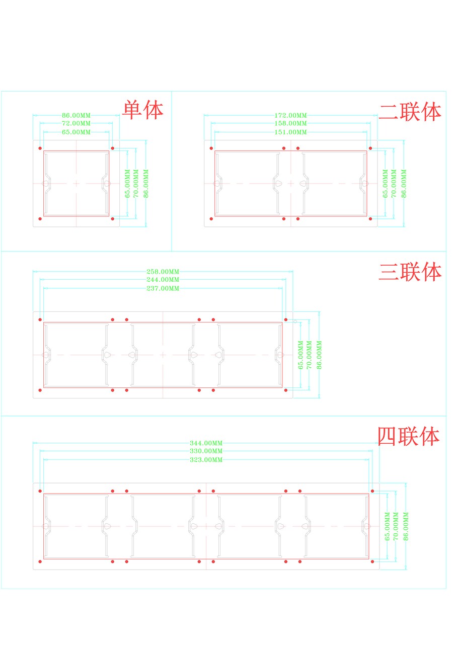 触摸开关C、D款1-4联体木饰面安装开孔图